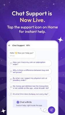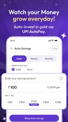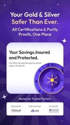 "ஆரா கோல்ட்" செயலியின் தனித்துவமான அம்சங்கள் உங்கள் முதலீட்டு அனுபவத்தை மேம்படுத்துகின்றன. அனைவருக்கும் ஏற்ற மைக்ரோ-சேமிப்பு திட்டங்கள் மூலம் தங்கம் மற்றும் வெள்ளி இரண்டிலும் சேமிக்கலாம். உங்கள் தங்கம் இந்தியாவின் உயர்தர வங்கி லாக்கர்களில் பாதுகாக்கப்படுகிறது – திருட்டு பற்றிய கவலையோ அல்லது அதிக கட்டணங்களோ இல்லை. ஒவ்வொரு வாங்குதலுக்கும் இணையான தங்கம் உலகத் தரம் வாய்ந்த பெட்டகங்களில் சேமிக்கப்படுவதை நாங்கள் உறுதி செய்கிறோம். SEBI-யால் அங்கீகரிக்கப்பட்ட ஒரு சுதந்திரமான அறங்காவலர் மூலம் உங்கள் தங்கம் பாதுகாக்கப்பட்டு, 24K தரமான தங்கத்திற்கு உத்தரவாதம் அளிக்கப்படுகிறது. எளிமையான இடைமுகம் மற்றும் பாதுகாப்பான பரிவர்த்தனைகள் மூலம் தடையற்ற அனுபவத்தைப் பெறுங்கள்.