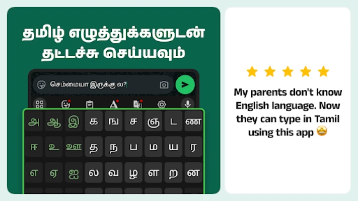 தமிழ் தட்டச்சு என்பது இனி ஒரு சவாலாக இருக்காது! Desh Tamil Keyboard, உங்கள் கைபேசியில் தமிழைப் புத்திசாலித்தனமாகவும், விரைவாகவும், எளிதாகவும் உள்ளிட புதியதோர் உலகிற்கு அழைத்துச் செல்கிறது. நீங்கள் ஆங்கில எழுத்துக்களைக் கொண்டு தமிழை (Tanglish) எழுத விரும்பினாலும், உங்கள் குரல் மூலம் தமிழைப் பேச விரும்பினாலும், உங்கள் கைப்பட வரைந்து எழுத்துக்களை உருவாக்க விரும்பினாலும், அல்லது பாரம்பரிய முறைப்படி ஒவ்வொரு தமிழ் எழுத்தையும் தேர்ந்தெடுத்து தட்டச்ச விரும்பினாலும், Desh Tamil Keyboard அனைத்து வழிகளையும் வழங்குகிறது. ஆங்கிலத்தில் விரைவாகப் பேச வேண்டுமானால், ஒரு நொடியில் தமிழ் பயன்முறையை அணைத்து, ஆங்கிலத்தில் தட்டச்சும் வசதியும் உள்ளது. இது நேரத்தையும் உழைப்பையும் மிச்சப்படுத்தி, உங்கள் தமிழைப் புதிய வேகத்தில் கொண்டு சேர்க்கிறது.