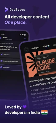 நவீன மென்பொருள் உருவாக்குநர்களுக்கு அத்தியாவசியமான தகவல்கள் விரவிக் கிடக்கும் உலகில், DevBytes ஒரு முழுமையான தீர்வாக வெளிப்படுகிறது. பலவிதமான தளங்களில் தகவல்களைத் தேடி நேரம் செலவிடுவதை விட்டுவிட்டு, DevBytes அனைத்தையும் ஒரு நேர்த்தியான, வேகமான, மற்றும் கவனச் சிதறல்கள் இல்லாத இடத்தில் தருகிறது. தேவையற்ற குறுக்கீடுகள் இல்லை, விளம்பரங்கள் இல்லை – உங்களை கூர்மையான, புத்திசாலித்தனமான உருவாக்குநராக மாற்றும் அடிப்படைக் கூறுகள் மட்டுமே இங்கு உள்ளன. தினசரி வெறும் 5-7 நிமிடங்களில், அச்சுறுத்தலான தகவல்களின்றி உலகத்துடன் நீங்கள் இணைந்திருக்க DevBytes உதவுகிறது.