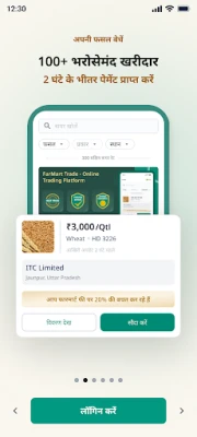 நம்பகமான உள்ளூர் மற்றும் தேசிய வாங்குபவர்களுக்கு உங்கள் பொருட்களை விற்பது FarmartApp உடன் முன்னெப்போதையும் விட எளிதானது. கொள்முதல் விலைகளை நிகழ்நேரத்தில் பார்த்து, சிறந்த முடிவுகளை எடுக்கலாம். சௌதா விதிமுறைகளின்படி, சரியான நேரத்தில் பணம் பெறுவதற்கான 100% உத்தரவாதத்துடன் வர்த்தகம் செய்யலாம். ஒவ்வொரு சௌதாவின் முன்னேற்றம் குறித்தும் நிகழ்நேர வாட்ஸ்அப் மற்றும் செயலி அறிவிப்புகளைப் பெற்று, உங்கள் விரல் நுனியில் அனைத்தையும் வைத்திருக்கலாம். மேலும், FarmartApp விரிவான சந்தைப் போக்குகள், விலைகள், பொருட்களின் இருப்பு மற்றும் தேவை போன்ற தகவல்களை வழங்குகிறது. உர நகர்வுத் தகவல்கள், நிதிப் பதிவேடுகளைக் கண்காணிக்கும் பை காதா கருவி, பயிர் உற்பத்தித்திறனை அதிகரிக்கத் தேவையான ஆலோசனைகள் மற்றும் துல்லியமான உள்ளூர் வானிலை முன்னறிவிப்பு போன்ற உயர் மதிப்புள்ள தகவல்களும் இதில் அடங்கும்.