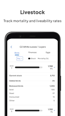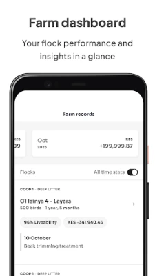 Kukufarm மூலம், உங்களுடைய கோழிக் கூட்டங்களின் நிதி நிலை, முட்டை உற்பத்தி மற்றும் இறப்பு விகிதம் போன்ற அனைத்து முக்கியமான தகவல்களையும் எளிமையான வரைபடங்கள் மூலம் உடனுக்குடன் பார்க்கலாம். தினசரி, வாராந்திர, மாதாந்திர மற்றும் ஒட்டுமொத்த செயல்திறனை ஒரு பார்வையில் புரிந்துகொள்ள முடியும். இது உங்களின் பண்ணை குறித்த யூகங்களை அகற்றி, உண்மையான தரவுகளின் அடிப்படையில் வளர்ப்பு முறைகளை மேம்படுத்த வழிவகுக்கிறது. Kukufarm இன் பிரத்யேக டாஷ்போர்டு, பண்ணை குறித்த விரிவான நுண்ணறிவுகளை வழங்கி, ஒவ்வொரு முடிவையும் தகவலறிந்ததாக மாற்றுகிறது. இதன் மூலம் உங்கள் கோழிப் பண்ணையின் உற்பத்தித்திறனை அதிகரிக்கலாம்.