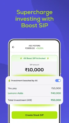 பங்குச் சந்தையில் லாபம் ஈட்டுவதை லெமன் எளிதாக்குகிறது. நிஃப்டி 50 மற்றும் சென்செக்ஸின் நேரடி விலை நகர்வுகளை உடனுக்குடன் கண்காணித்து, இன்ட்ராடே வர்த்தக முடிவுகளை விரைவாக எடுக்கலாம். பி & எல் அறிக்கைகள், இருப்புநிலைக் குறிப்புகள் மற்றும் பணப்புழக்கம் போன்ற விரிவான பகுப்பாய்வுகளுடன், நீங்கள் தகவலறிந்த முதலீடுகளைச் செய்யலாம். மேம்பட்ட வர்த்தகக் கருவிகள் மற்றும் விளக்கப்படங்கள் மூலம் உங்கள் போர்ட்ஃபோலியோவை புத்திசாலித்தனமாக நிர்வகிக்கலாம். அத்துடன், மொபிக்குவிக், ஸ்விக்கி, போட், ஓலா போன்ற வரவிருக்கும் ஐபிஓ செய்திகள் மற்றும் நுண்ணறிவுகளை சந்தைக்கு வருவதற்கு முன்பே அறிந்து, எளிய பயனர் இடைமுகத்துடன் அவற்றில் பங்கேற்று, மறைக்கப்பட்ட கட்டணங்கள் இல்லாமல் தொந்தரவு இல்லாத வர்த்தகத்தை அனுபவிக்கலாம். மேலும், வெறும் ₹100 முதல் உங்கள் எஸ்ஐபி முதலீட்டைத் தொடங்கி, ஆண்டுக்கு ₹46,800 வரை வரி சேமிக்க உதவும் ELSS நிதிகளில் முதலீடு செய்ய, எஸ்பிஐ, ஹெச்டிஎஃப்சி, குவாண்ட் போன்ற 20க்கும் மேற்பட்ட முன்னணி நிறுவனங்களின் பரஸ்பர நிதிகள் உங்கள் வசதிக்காகக் கிடைக்கின்றன.