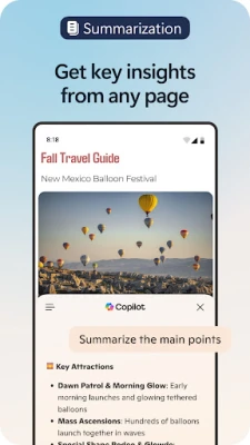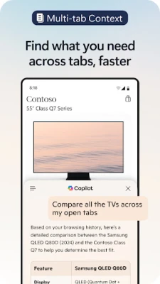மைக்ரோசாஃப்ட் எட்ஜ் உலாவிக்குள் ஒருங்கிணைக்கப்பட்டுள்ள கோபைலட், உங்கள் டிஜிட்டல் பணிகளை எளிதாக்குகிறது. ஜிபிடி-5 (GPT-5) மூலம் இயங்கும் இந்த மேம்பட்ட ஏஐ (AI) உதவியாளர், வேகமான, துல்லியமான மற்றும் தனிப்பயனாக்கப்பட்ட தேடல் முடிவுகளை வழங்குகிறது. வலைப்பக்கங்கள், பிடிஎஃப் கோப்புகள் மற்றும் வீடியோக்களை நொடிகளில் சுருக்கமாகப் புரிந்துகொள்ளவும், படங்களை பதிவேற்றித் தேடவும் அல்லது உத்வேகம் பெறவும் கோபைலட் உதவும். மேலும், உங்கள் குரல் மூலமாக கேள்விகளைக் கேட்கலாம், புதிய யோசனைகளை உருவாக்கலாம், கதைகள் அல்லது ஸ்கிரிப்ட்களை எழுதலாம். பன்மொழி மொழிபெயர்ப்பு மற்றும் பிழை திருத்தம், AI மூலம் படங்களை உருவாக்கும் திறன் என, கோபைலட் உங்கள் படைப்பாற்றலை அடுத்த கட்டத்திற்கு கொண்டு செல்கிறது.
