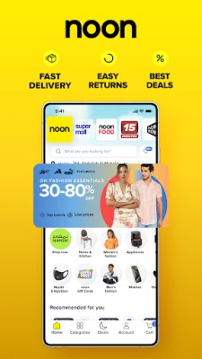 தினசரி புதிய சலுகைகள் மற்றும் பிரத்யேக தள்ளுபடிகள் மூலம் பெரும் சேமிப்பை noon உறுதி செய்கிறது. மெகா விற்பனைகள், உடனடி தள்ளுபடிகள் மற்றும் சிறப்புத் தொகுப்புகள் உங்கள் ஒவ்வொரு வாங்குதலையும் லாபகரமாக்குகின்றன. பிரபலமான ஆப்பிள், சாம்சங், சியோமி போன்ற நிறுவனங்களின் சமீபத்திய மின்னணு சாதனங்களையும், முன்னணி பிராண்டுகளின் ஃபேஷன் உடைகள் மற்றும் ஆபரணங்களையும் இங்கு காணலாம். உங்கள் வீட்டிற்குத் தேவையான பிரீமியம் வீட்டு உபகரணங்கள் மற்றும் வீட்டு அலங்காரப் பொருட்களையும் சிறந்த விலையில் பெறலாம். மேலும், மளிகை பொருட்கள் மற்றும் அத்தியாவசிய பொருட்களை "noon minutes" மூலம் விரைவாகவும், வசதியாகவும் பெற்றுக்கொள்ளலாம், இதன் மூலம் உங்கள் தினசரி தேவைகள் எளிதாக்கப்படுகின்றன.